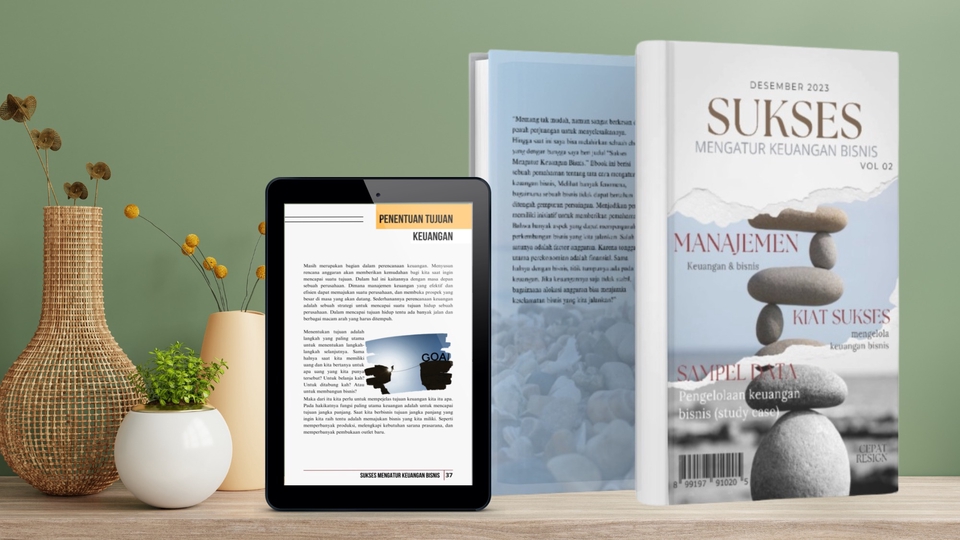 Rp300,0 rbuntuk 30-50 halaman Pilihan Desain sesuai Industri Anda, 3 Refrensi dari kami Desain Cover Depan/Sampul eBook, isi Jenis Desain membutuhkan Detail Khusus Revisi Desain 5 kali revisi minor dan major Ide, Tema, Konsep Desain dari Klien/Freelancer File yang Diterima JPG/PNG, PDF Mockup