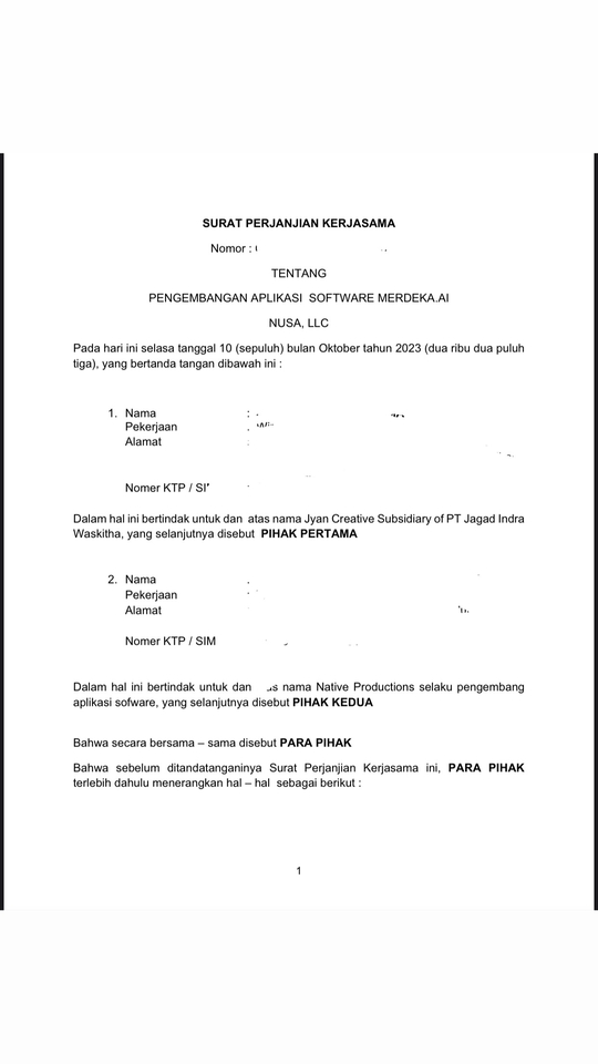 Perjanjian Pembuatan Aplikasi Software