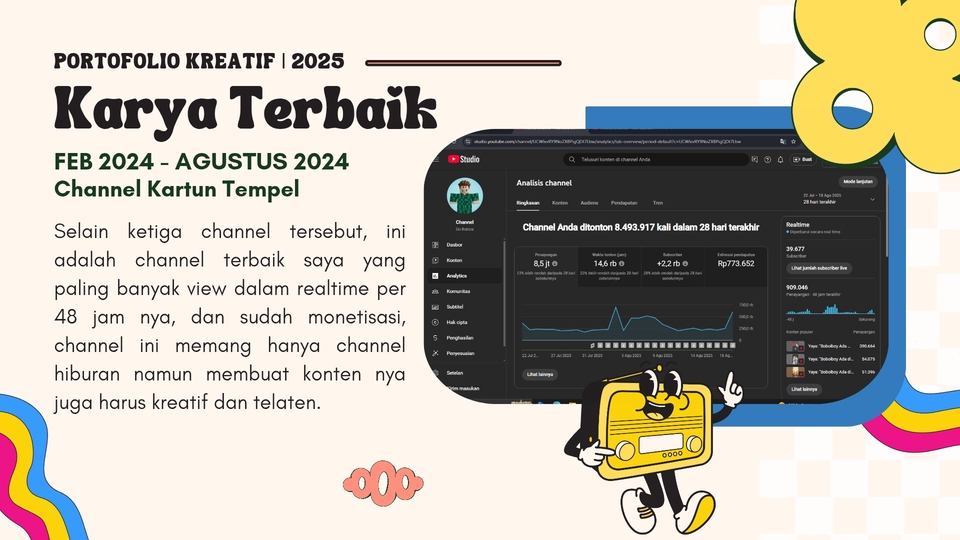 Hallo saya Chincinia, memiliki pengalaman selama 1 tahun di bidang produksi konten video kreatif untuk shorts and long di platform YouTub. Saya juga memiliki minat membuat konten promosi dengan ide menarik & unik. Saya juga terbiasa membuat desain sederhana menggunakan Canva untuk kebutuhan pendukung konten saya. Dan saya penggemar lagu lagu kpop. Mari bekerjasama untuk meningkatkan kreativitas.