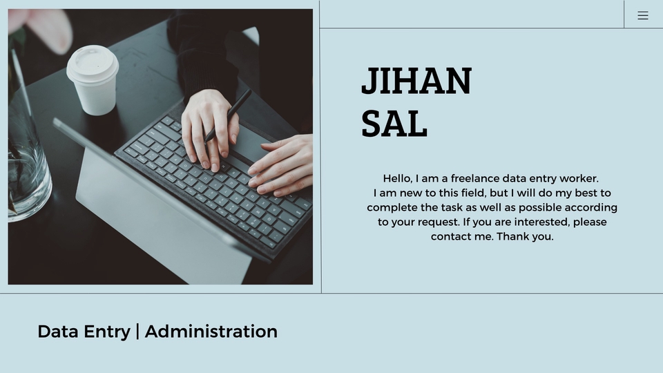 Hello, I am a freelance data entry and administrative worker. I'm know and familiar with tools Microsoft office (Word,Excel,Powerpoint), Google Spreadsheet, Google Doc, Canva. I am new to this field, but I will do my best to complete the task as well as possible according to your request. If you are interested, please contact me. Thank you.