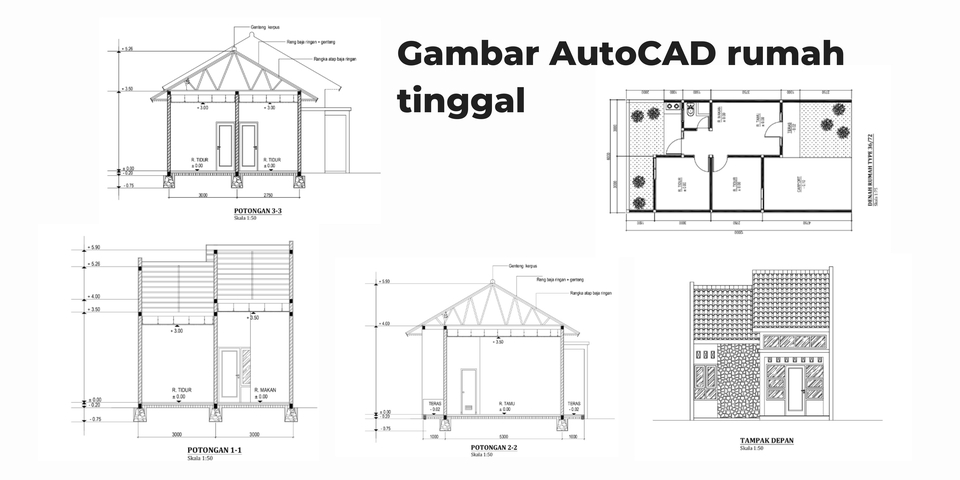 Rp250,0 rbGambar teknis lengkap (denah + tampak + potongan) + Gambar 3D SKP (1 lantai sederhana)