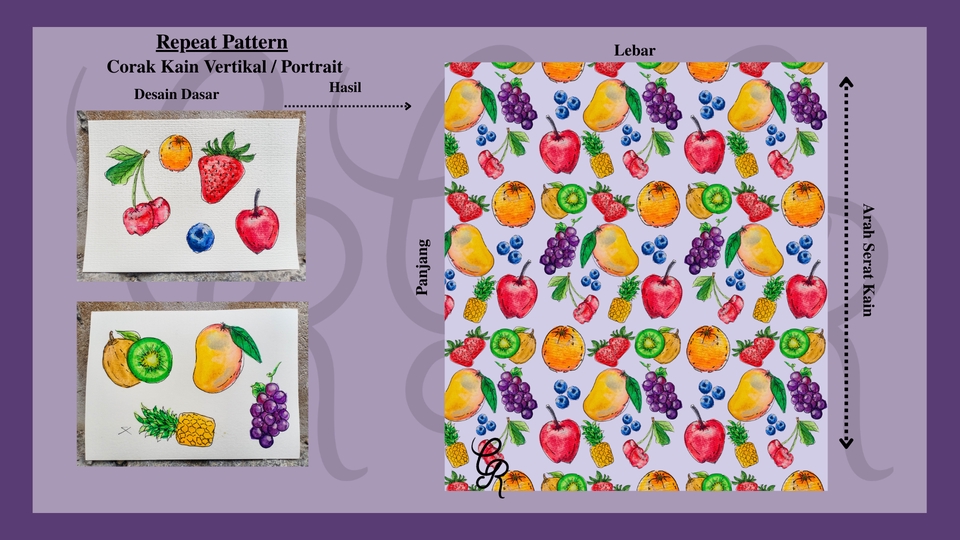 Rp150,0 rb- 1 desain dengan komposisi sederhana - Motif : monokrom/ garis-garis/ polkadot/ geometri, dll. Harga dasar bisa berubah tergantung kerumitan desain, tambah variasi warna + Rp 25.000 / item