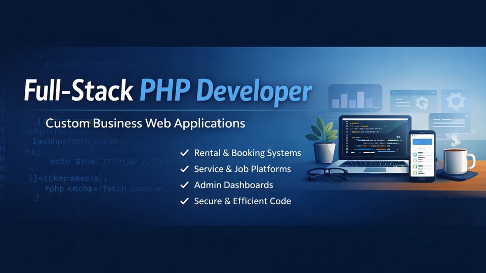 Saya Full-Stack PHP Developer yang berfokus pada pembuatan website dan web application untuk kebutuhan bisnis. Berpengalaman mengerjakan sistem sewa barang/jasa, booking layanan, penyaluran asisten, serta admin panel. Saya menangani frontend, backend, dan database dengan kode yang rapi, aman, dan mudah dikembangkan.