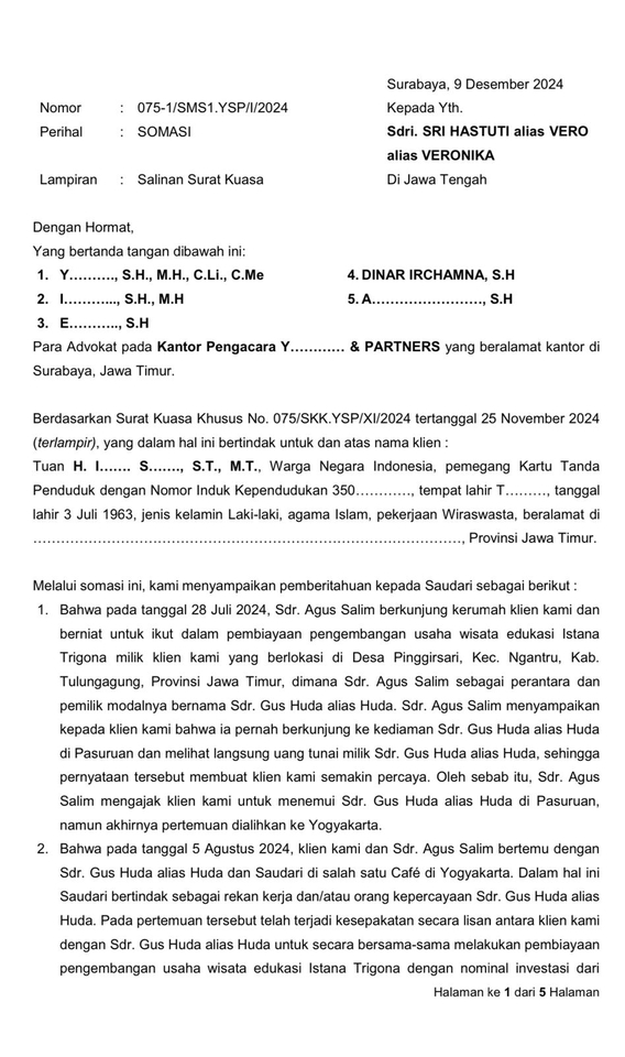 Rp225,0 rbPenulisan Somasi dilakukan dengan cepat, ringkas dan mengutamakan ketelitian, juga mengguanakan bahasa hukum yang sesuai, dikerjakan dalam waktu 2-3 hari