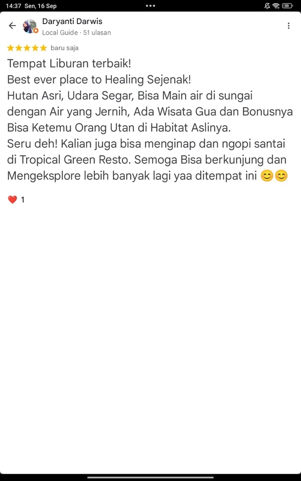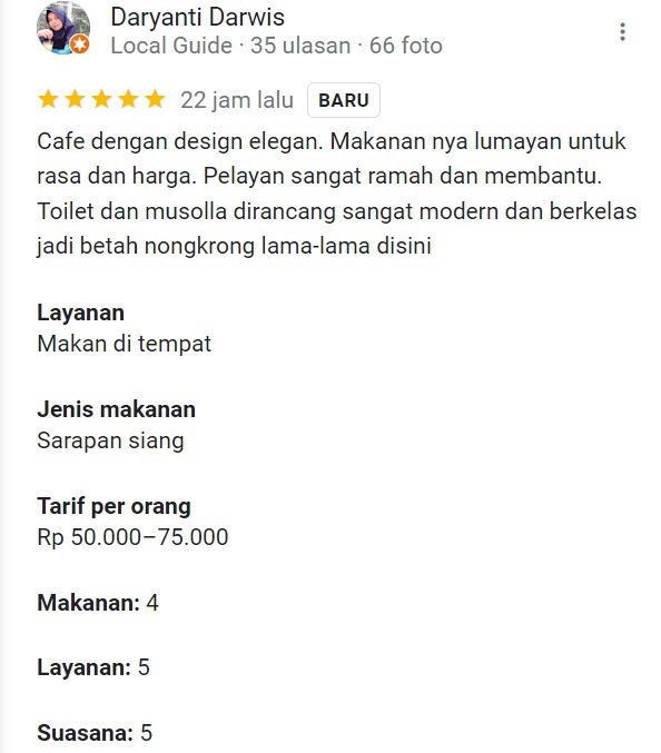 Review dengan 5 stars dapat membuat bisnis anda semakin dikenal dan dimintai. Dengan review 5 starts di google dapat memudahkan turis untuk mencari dan menemukan bisnis anda. Jasa yang saya berikan berasal dari akun original dengan manual writing bukan akun robot/bot. Akun saya telah melakukan review sejak tahun 2022. Review dapat ditambahkan dengan foto (harga menyesuaikan). Langkah Pekerjaan 1. Berdiskusi dengan klien terkait google business/maps yang mau direview 2. Memberikan link google business/maps tersebut 3. Klien memberikan foto (jika ada) dan review yang ingin dituliskan 4. Review yang telah dipublish dalam bentuk screenshot akan dikirimkan kepada klien