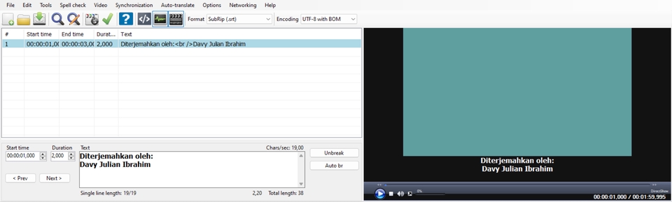 Rp200,0 rb- Terjemahan takarir (subtitle) dari bahasa Inggris atau Melayu ke bahasa Indonesia. - Harga per menit adalah 12.000. - Naskah atau file template dalam bahasa Inggris wajib diberikan. - File dalam bentuk .srt, .ass, atau sesuai permintaan klien. - Durasi penyelesaian pekerjaan 1 hari atau menyesuaikan durasi dan tingkat kesulitan pengerjaan.