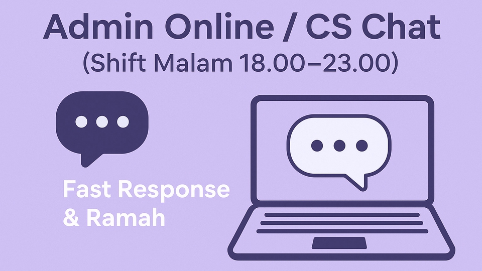 - • Layanan Admin Online / Balas Chat Pelanggan sesuai jam kerja (18.00–22.00)