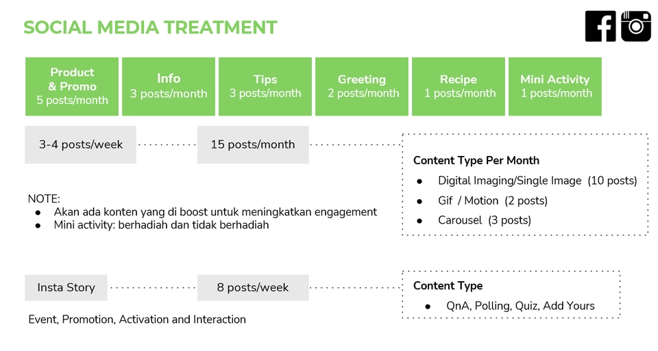 Rp1,5 jt1. Ide Content. 2. Timeline Posting Content. 3. Upload Content (Tidak termasuk balas Dm & Comment) 4. Copywriting & Caption (15 Posting). 5. Reporting. *Noted : Tidak termasuk design, untuk design akan diberikan referensi saja untuk di eksekusi.