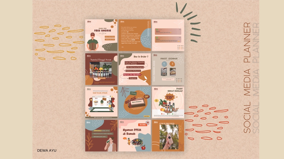 Jasa social media management untuk UMKM ataupun pribadi. Khusus untuk Social Media Post Instagram. Pembuatan planning akan dilakukan di awal dan harus approve saat planning sebelum dilakukan eksekusi pembuatan feed/story/reels. Langkah Pekerjaan 1. Kirim Brief tentang poin-poin informasi yang akan dikerjakan 2. Berikan Penjelasan Mengenai Referensi Desain yang Diinginkan atau Memilih Mengikuti Desain Kami 3. Kirim gambar yang dibutuhkan 4. Membuat aset grafis yang diminta klien 5. Mengirim hasil yang telah dibuat 6. Monitoring dan Evaluasi Kinerja konten
