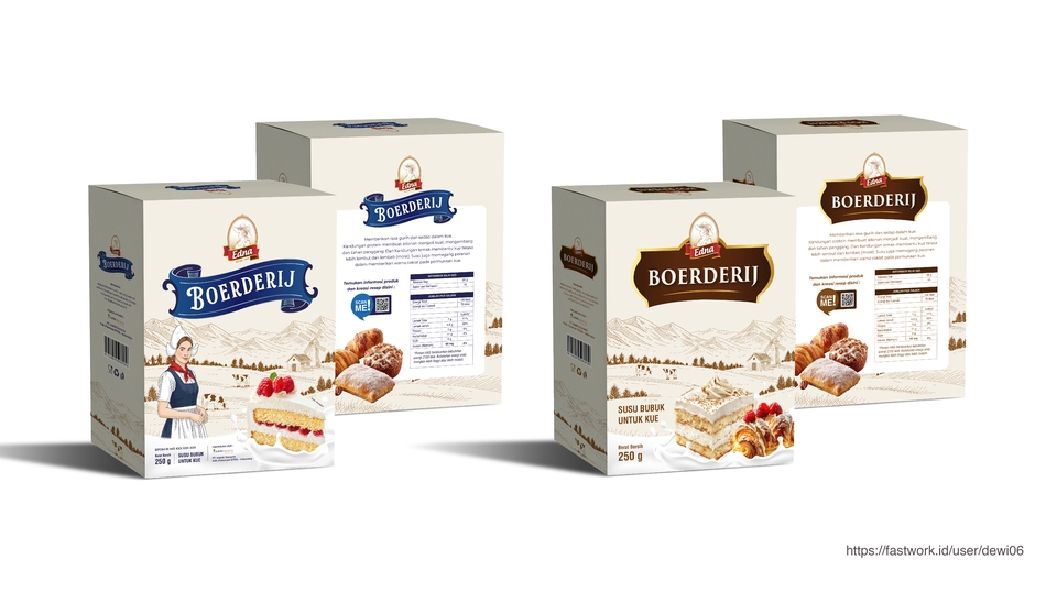 Halo, saya dewi. Mohon meluangkan waktu sebentar untuk membaca deskripsi produk ya :D Desain Kemasan / Packaging dapat membantu produk / jasa Anda jadi lebih mudah diingat, mempunyai ciri khas, dan terlihat menarik untuk calon customer Anda. Saya dapat membantu membuat Desain Packaging/Kemasan seperti : Packaging makanan, box, produk kesehatan, kecantikan, bahan pokok, stationery, minuman, alat elektronik, tas, paperbag, spundbond, frozen food, skincare, dan lain-lain. Harga yang tercantum, hanya untuk acuan. Untuk lebih jelasnya bisa chat saya langsung. Harga dan waktu pengerjaan tergantung dengan tingkat kesulitan, konsep dan keinginan klien. Jadi jangan ragu / sungkan untuk menghubungi saya via chat :) Mohon bantuannya untuk memberikan brief dan arahan yang detail, agar desain yang dibuat sesuai dengan keinginan dan ekspektasi. Revisi hanya berupa revisi minor, jika ada revisi yang sampai merubah keseluruhan desain, akan ada biaya tambahan. Durasi pengerjaan tidak termasuk durasi revisi, jika butuh urgent bisa chat saya. Sebagai penunjang Desain Packaging / Kemasan Anda, saya juga melayani pembelian gambar/foto melalui website shutterstock, istock, dll. Langkah Pekerjaan 1. Client memberikan brief yang jelas dan detail (Jenis produk, ukuran, warna, konsep) 2. Diskusi mengenai konsep, harga dan durasi pengerjaan 3. Client melakukan pembayaran dan mengirimkan materi yang diperlukan (logo, semua tulisan, kontak, sosial media, dsb) 4. Desainer mengirimkan sample konsep untuk dipilih client 5. Proses pengerjaan 6. Proses revisi 7. Pengiriman file final 8. Penilaian