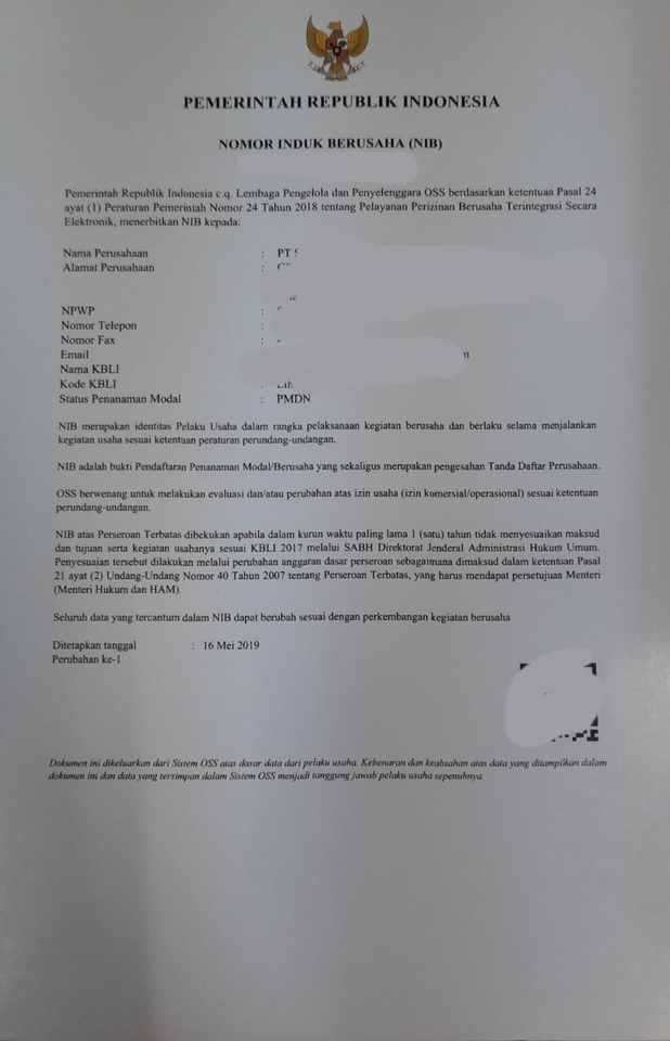 Jasa Pembuatan Legalitas Badan Hukum/Badan Usaha antara lain: - Akta Pendirian dan SK Pengesahan Menkumham - Akta Perubahan terakhir dan SK Pengesahan Menkumham - NIB dan Ijin OSS Syarat*: - KTP Penanggung Jawab Usaha - NPWP Penanggung Jawab Usaha *syarat dapat bertambah sesuai kebutuhan. Efektif dan Efisien,. Dapat konsultasi terkait Pembuatan Legalitas Perusahaan. Jika syarat lengkap, dapat selesai 3-5 hari kerja. Langkah Pekerjaan 1. Konsultasikan kebutuhan anda 2. Konsultan akan memberikan daftar dokumen yang perlu disiapkan Klien. 3. Dokumen diterima oleh Konsultan untuk siap dikerjakan. Jika ada dokumen yang kurang Konsultan akan memberitahu Klien untuk dilengkapi.