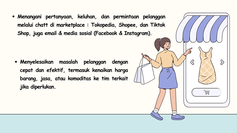 - • Membalas DM, komentar, dan meneruskan orderan ke klien.