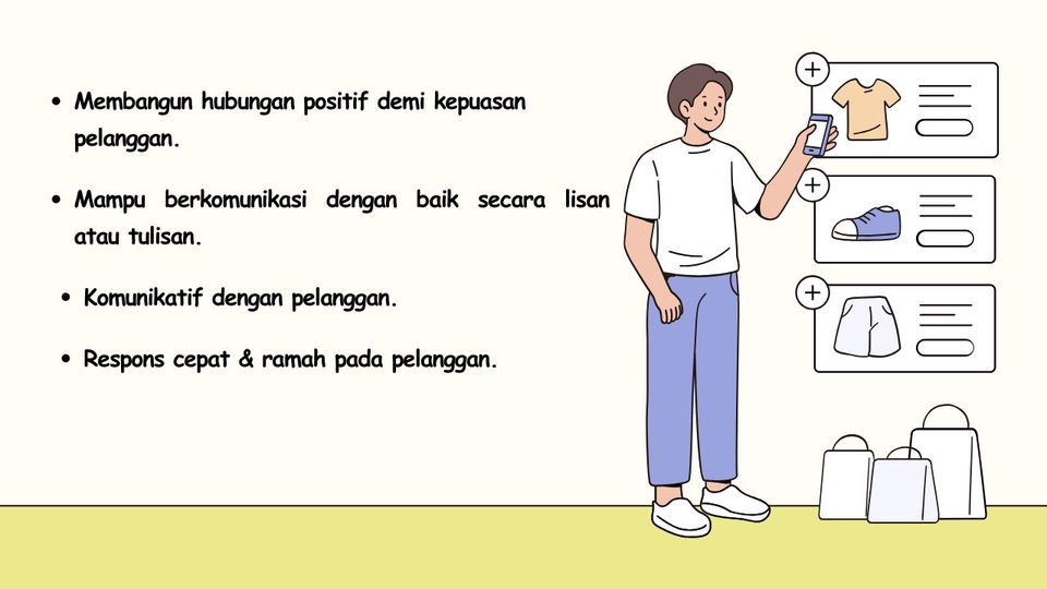 Langkah Kerja : Menangani pertanyaan, keluhan, dan permintaan pelanggan melalui chatt di marketplace : Tokopedia, Shopee, dan Tiktok Shop, juga email & media sosial (Facebook & Instagram). Menyelesaikan masalah pelanggan dengan cepat dan efektif, termasuk kenaikan harga barang, jasa, atau komoditas ke tim terkait jika diperlukan. Membangun hubungan positif demi kepuasan pelanggan. Mampu berkomunikasi dengan baik secara lisan atau tulisan. Komunikatif dengan pelanggan. Respons cepat & ramah pada pelanggan.