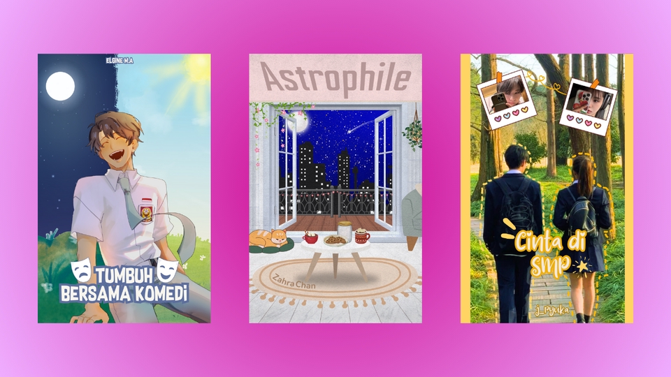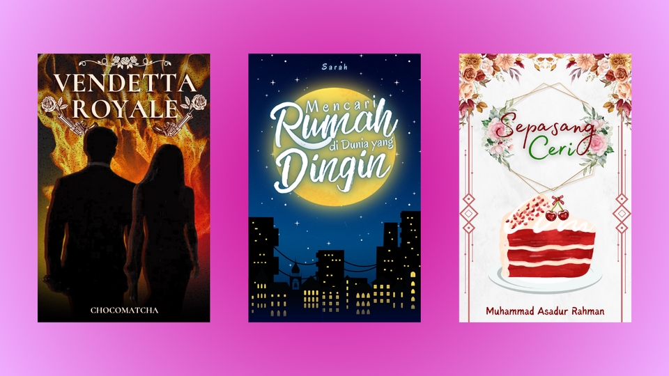 Cerita bagus layak mendapat wajah yang sama bagusnya. Aku akan membantu kamu menciptakan cover buku fiksi yang menarik, sesuai genre, dan siap memikat pembaca sejak pandangan pertama. Apa yang kamu dapatkan? 1. Desain cover original & kreatif (bukan template pasaran) 2. Disesuaikan dengan genre cerita (fantasi, romance, thriller, sci-fi, dll.) 3. Kualitas resolusi tinggi, siap cetak & digital (Wattpad, e-book, atau penerbitan fisik) 4. Konsultasi konsep agar cover sesuai visi ceritamu Kenapa pilih aku? ✔ Punya pengalaman di dunia fiksi & memahami tren visual genre ✔ Desain dengan sentuhan storytelling – bukan sekadar gambar, tapi representasi ceritamu ✔ Fast response, friendly, dan proses yang transparan 🎨 Cover bukumu bukan hanya hiasan, tapi gerbang pertama ke dunia ceritamu. Mari buat sesuatu yang bikin pembaca jatuh cinta bahkan sebelum membaca halaman pertama.