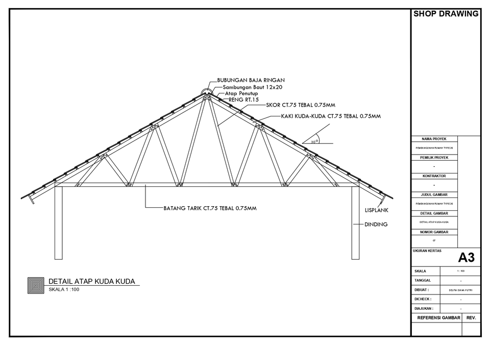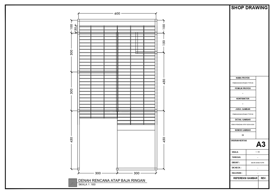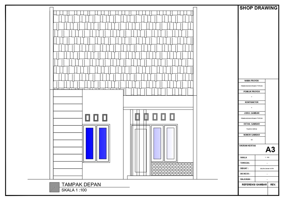 Rp200,0 rb✔ 2 gambar (misalnya: denah + tampak, atau denah + potongan) ✔ Format DWG + PDF/JPEG ✔ Revisi 2x 🕒 Durasi: 2–3 hari kerja