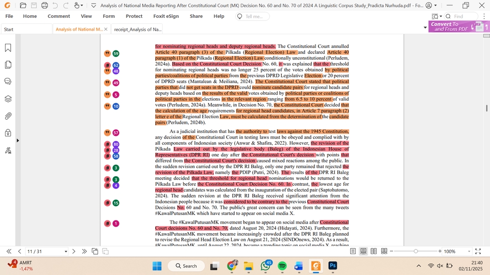 Penulis berpengalaman lebih dari 10 tahun di bidang penulisan artikel ilmiah dan populer. Lulusan S-2 Linguistik Terapan dengan 23 publikasi artikel, 1 buku, dan 4 artikel terindeks Scopus. Ahli dalam menulis artikel atau tulisan berkualitas tinggi, baik untuk publikasi nasional maupun internasional. Selain itu, mampu membuat karya tulis yang menarik perhatian pembaca dari berbagai kalangan.
