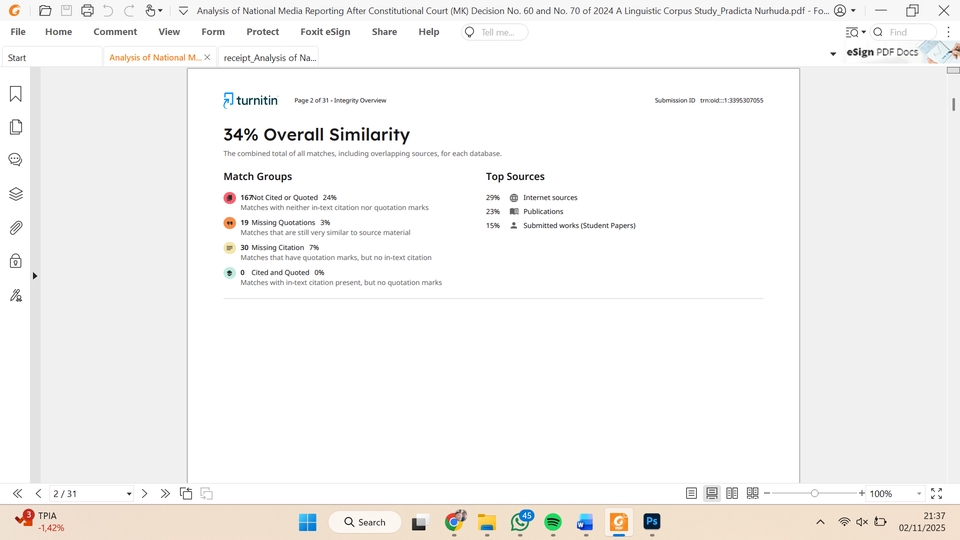 Kami menyediakan layanan pemeriksaan plagiarisme menggunakan Turnitin, memparafrasekan tulisan dengan QuillBot, dan proofreading menggunakan Grammarly untuk memastikan karya Anda bebas dari kesamaan yang tidak sah dan memiliki kualitas bahasa yang sempurna. Layanan ini cocok untuk skripsi, tesis, artikel, atau dokumen lainnya yang membutuhkan validitas dan ketepatan. Langkah Pekerjaan: Diskusi tentang kebutuhan Anda: Kami dapat memahami dengan jelas apa yang Anda butuhkan untuk memastikan layanan yang sesuai. Pengerjaan pemeriksaan Turnitin, parafrase dengan QuillBot, dan/atau perbaikan dengan Grammarly: Kami akan memeriksa keaslian tulisan Anda menggunakan Turnitin, memparafrase dengan QuillBot, dan memperbaiki kesalahan, ejaan, serta gaya penulisan akademik dengan Grammarly. Mengirimkan kembali file yang telah diperbaiki: File yang telah diperiksa dan diperbaiki akan dikirimkan kembali kepada Anda dengan laporan yang jelas dan hasil yang optimal. Pemeriksaan Plagiarisme Turnitin: Deteksi kesamaan dan keaslian tulisan Anda dengan laporan yang mendalam. Parafrase QuillBot: Memperbaiki letak plagiasi tulisan Anda dengan tetap mempertahankan makna asli. Proofreading dengan Grammarly: Memperbaiki kesalahan ejaan, tata bahasa, dan gaya penulisan agar lebih profesional. Layanan Cepat dan Terpercaya: Waktu pengerjaan yang efisien dan hasil yang dapat diandalkan. Pastikan karya Anda bebas dari plagiarisme dan kesalahan ejaan atau penulisan dengan layanan kami yang cepat, tepercaya, dan berkualitas!