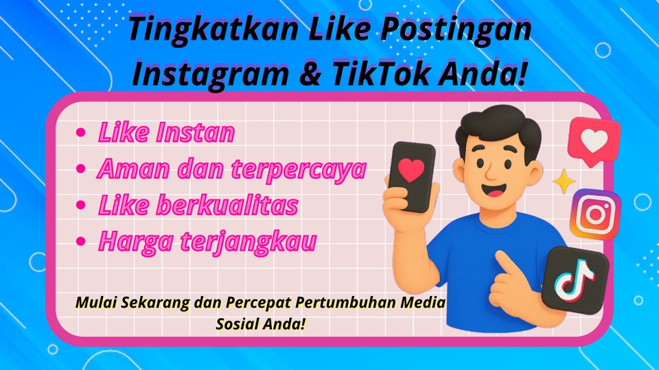 🚀 Boost Akun Sosial Media Kamu Sekarang! Layanan Penambah Followers, Likes, Views untuk Instagram & TikTok Ingin akun Instagram atau TikTok kamu terlihat lebih aktif dan profesional? Kami hadir untuk bantu kamu meningkatkan kepercayaan audiens dan memperluas jangkauan akunmu! 💡 Kenapa Harus Pakai Jasa Kami? ✔️ Menjangkau audiens lebih luas tanpa repot ✔️ Meningkatkan kepercayaan dan kredibilitas akun ✔️ Followers, Likes, atau Views meningkat secara signifikan ✔️ Cocok untuk personal branding, bisnis, atau content creator ⚙️ Cara Kerja: 1. Pilih layanan yang kamu butuhkan 2. Kirimkan link atau username akun 3. Lakukan pembayaran sesuai jumlah layanan 4. Proses akan berjalan maksimal dalam 1x24 jam 5. Bukti pekerjaan akan kami kirimkan (format JPG/PNG) ❗ Penting! ❌ Pastikan akun tidak dalam mode private ❌ Jangan mengganti username selama proses berlangsung 🎯 Tertarik? Cukup chat kami dan kami bantu dari awal sampai selesai. Aman, cepat, dan terpercaya! Langkah Pekerjaan 1. Melakukan order terlebih dahulu 2. Melakukan konfirmasi pembayaran 3. Kirim link atau username instagram, tiktok 4. Orderan akan diproses 5. Apabila orderan telah selesai buyer akan di konfirmasi
