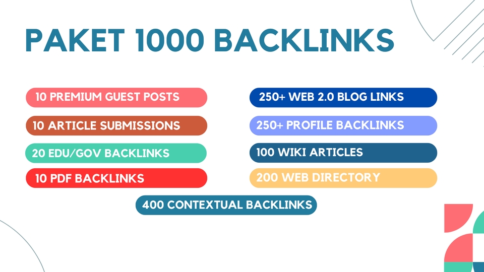 Rp1,5 jt- 2.000 Backlink Web 2.0 - 1000 Backlink EDU - 1500 Social Bookmark - 500 Wiki Backlinks - 20 PBN DA 25+ - 10 Backlink DA 70+