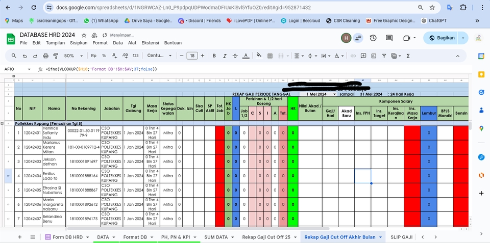 Rp200,0 rbFormat data dengan rumus yang nantinya dapat digunakan oleh Mitra sesuai dengan kebutuhan, seperti format Data Presensi, Rekap Gaji, Slip Gaji, Laporan Laba Rugi, dll Dengan ketentuan sudah ada data mentah untuk tarikan data ke format yang sudah dibuat