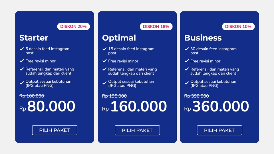 Rp160,0 rb- 15 design feed instagram post (bebas single atau carousel) - Free revisi minor - Referensi, dan materi yang sudah lengkap dari client. - Output sesuai kebutuhan (JPG atau PNG)