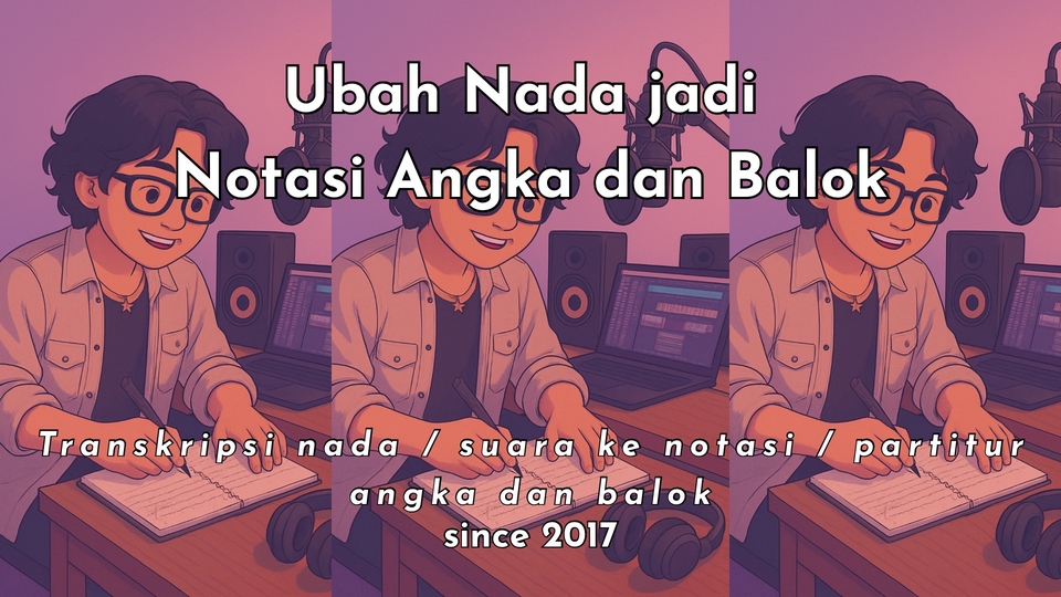 Halo, selamat datang! Saya menyediakan jasa pembuatan notasi musik (angka maupun balok) untuk kebutuhan lagu, aransemen, hingga karya profesional. 🎼 Layanan: • Penulisan notasi angka / balok sesuai lagu atau komposisi • Transkripsi dari audio ke notasi • Aransemen sederhana dalam bentuk notasi ✨ Kenapa memilih saya? • Berpengalaman lebih dari 5 tahun dalam menulis & mengaransemen musik • Hasil notasi rapi, mudah dibaca, dan siap digunakan untuk performer maupun kebutuhan akademis 📌 Alur Kerja: 1. Diskusi kebutuhan & referensi 2. Proses pengerjaan notasi 3. Revisi 1x bila diperlukan 4. Hasil akhir siap digunakan 🎶 Wujudkan karyamu dengan notasi musik profesional yang jelas dan berkualitas.