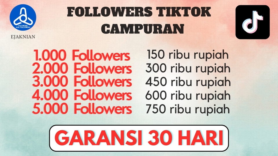 Rp150,0 rb👉1000 Followers = 150 Ribu Rupiah 👉2000 Followers = 300 Ribu Rupiah 👉3000 Followers = 450 Ribu Rupiah 👉4000 Followers = 600 Ribu Rupiah 👉5000 Followers = 750 Ribu Rupiah