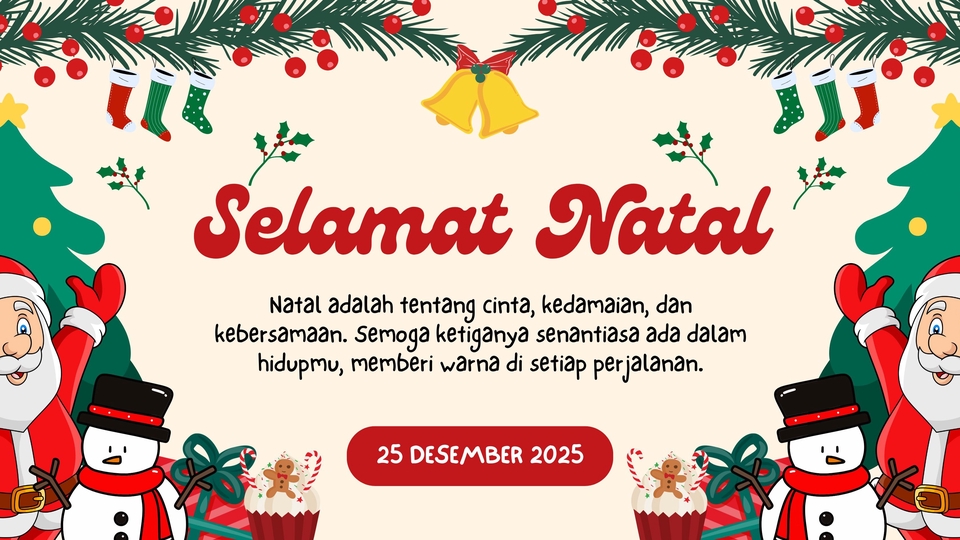 Butuh desain spanduk acara yang rapi, profesional, dan siap cetak? Saya menyediakan layanan desain spanduk, banner, backdrop, dan media promosi untuk berbagai kebutuhan seperti event kantor, ulang tahun, grand opening, gathering, seminar, wedding, hingga acara sekolah. Semua desain dibuat custom, menyesuaikan tema acara dan kebutuhan kamu. DAPATKAN DISKON UNTUK 10 ORANG PERTAMA !!!!!!! Rayakan Natal dengan desain yang berkesan dan penuh makna! 🎁✨ Saya siap membantu kamu membuat berbagai desain bertema Natal yang hangat, estetik, dan profesional — cocok untuk bisnis, acara gereja, sekolah, kantor, maupun keperluan pribadi. 🎄 Jenis Desain yang Bisa Kamu Pesan: - Spanduk / Banner Natal - Poster & Flyer Natal - Kartu Ucapan Natal (Digital & Cetak) - Feed / Story Instagram bertema Natal - Voucher & Promosi Natal Bisnis 🌟 Keunggulan Jasa Ini: Desain original, estetik, dan bisa disesuaikan dengan kebutuhan kamu Proses cepat dan komunikasi responsif File siap cetak (PDF, JPG, PNG) dan bisa digunakan di media sosial Unlimited revisi kecil sampai kamu puas 💬 💡 Cocok untuk: Gereja, perusahaan, toko online, acara komunitas, sekolah, dan pribadi yang ingin tampil spesial di momen Natal 🎅