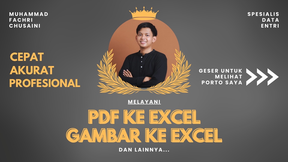 Hai, Nama saya Muhammad Fachri Chusaini. Saya berpengalaman di bidang Data Entry, Mengonversi Gambar/PDF menjadi Excel dan layanan lain yang terkait dengan hal tersebut. Saya juga memastikan bahwa pekerjaan saya akurat dan menjamin kepuasan dari klien saya. Layanan yang saya tawarkan: ✔ Konversi Gambar menjadi Excel dengan jumlah data yang sangat banyak; ✔ Konversi PDF menjadi Excel dengan jumlah data yang sangat banyak; ✔ Copy Paste Data; ✔ Entri Data dari bentuk text, web, dll menjadi Excel/Document Word; Mengapa Memilih Saya? ✅ Akurat dan Teliti : Saya memahami pentingnya detail dalam pengolahan data dan memastikan hasil yang akan saya berikan kepada klien sangat akurat; ✅ Komunikasi Lancar : Siap berdiskusi dengan klien untuk memastikan kebutuhan klien terpenuhi dan siap bertanggung jawab atas apa yang saya kerjakan; ✅ Berpengalaman : Memiliki pengetahuan dalam Microsoft Office (Word, Excel, PPT), dan Google Spreadsheets serta alat kerja lain yang mungkin akan dibutuhkan; ✅ Fleksibel : Dapat menyesuaikan dengan format atau template yang dibutuhkan oleh klien. Jaminan yang didapatkan: ✅ Data klien aman dan akan dijaga kerahasiaannya. ✅ Revisi gratis sampai klien puas! Langkah Pekerjaan 1. Diskusi awal dengan klien mengenai kebutuhan dan detail pekerjaan/proyek; 2. Penawaran harga (beserta pembayaran) dan waktu pengerjaan proyek sampai disepakati oleh kedua belah pihak; 3. Pengerjaan proyek sampai waktu yang telah disepakati oleh kedua belah pihak; 4. Setelah pengerjaan selesai, hasil akan langsung dikirimkan kepada klien; 5. Apabila klien merasa belum puas, revisi bisa dilakukan UNLIMITED sampai klien merasa puas; 6. Setelah klien merasa puas, proyek akan ditutup dan file akhir akan diterima klien.