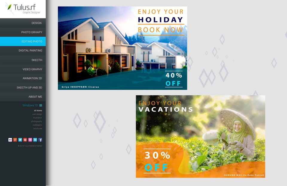 saya pernah mengambil jurusan design dan Animasi . dan saya berkerja sebagai design grafis semala 3 tahun . dan berkerja sebagai editor video selama 1 tahun Langkah Pekerjaan 1. berikan penjelasan / contoh foto yg ingin di edit 2. saya akan melakukan proses editing 3. saya menyerahkan hasil editan 4. ada bagian yg ingin di ubah atau revisi 5. saya edit kembali dan saya akan kirimkan hasil editan nya secepat mungkin