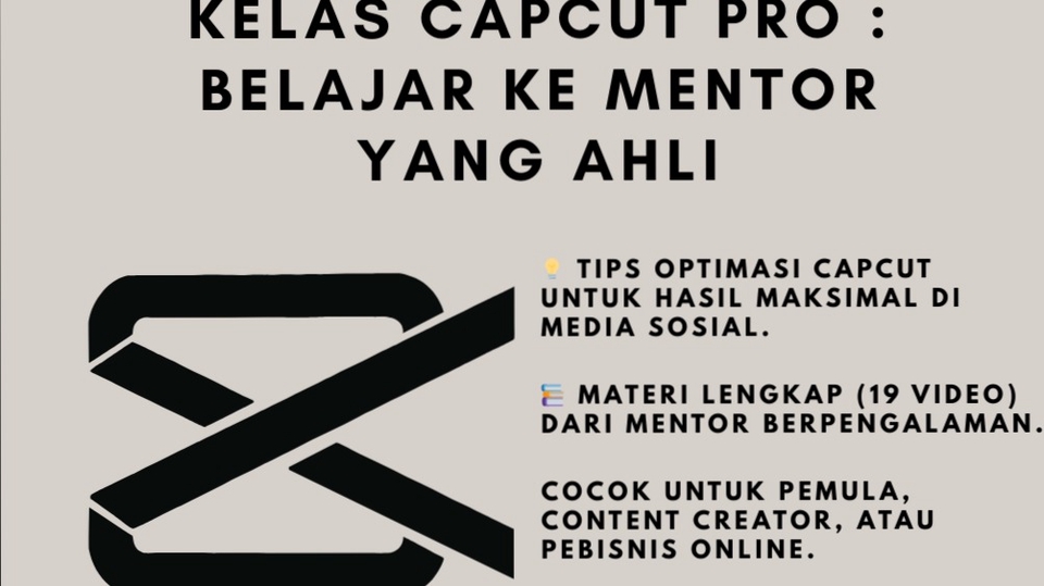 Ingin bikin video keren yang viral di TikTok, Instagram, atau YouTube tanpa ribet? Kelas CapCut Pro adalah solusi buat kamu! Dalam 19 materi video eksklusif, kamu akan belajar: 🎥 Edit video profesional dari nol, cocok untuk pemula. 🚀 Teknik rahasia bikin konten yang menarik perhatian. 💡 Tips optimasi CapCut untuk hasil maksimal di media sosial. ⏱️ Langkah mudah, praktis, dan langsung bisa dipraktikkan! Kelas ini dirancang berurutan agar kamu bisa nyerap ilmunya dengan mudah, mulai dari dasar sampai pro. 100% online, fleksibel, dan bisa diakses kapan saja! Plus, kamu dapat: 📚 Materi lengkap (19 video) dari mentor berpengalaman. 🔥 Bonus tips bikin konten yang bikin audiens nempel! 💸 Harga terjangkau, sekali bayar, akses selamanya. Kenapa Harus Ikut? Cocok untuk pemula, content creator, atau pebisnis online. Belajar dengan video praktis yang langsung to the point. Dukungan komunitas untuk tanya jawab dan sharing.