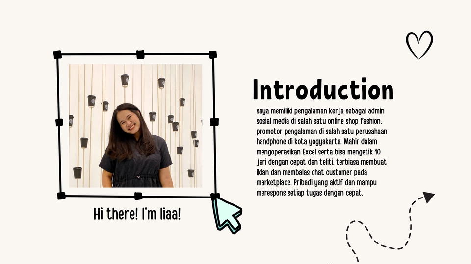 Hallo perkenalkan saya Farah. Saya dapat bekerja sebagai Customer Service dan Admin. Dengan Rincian sebagai berikut: 1. Saya memiliki pengalaman bekerja Customer Service dan Admin sosial media di salah satu brand handphone 2. Mampu berkomunikasi secara lisan atau tulisan. 3. Terbiasa berinteraksi dengan customer 4. Mampu membalas chat dengan cepat dan ramah