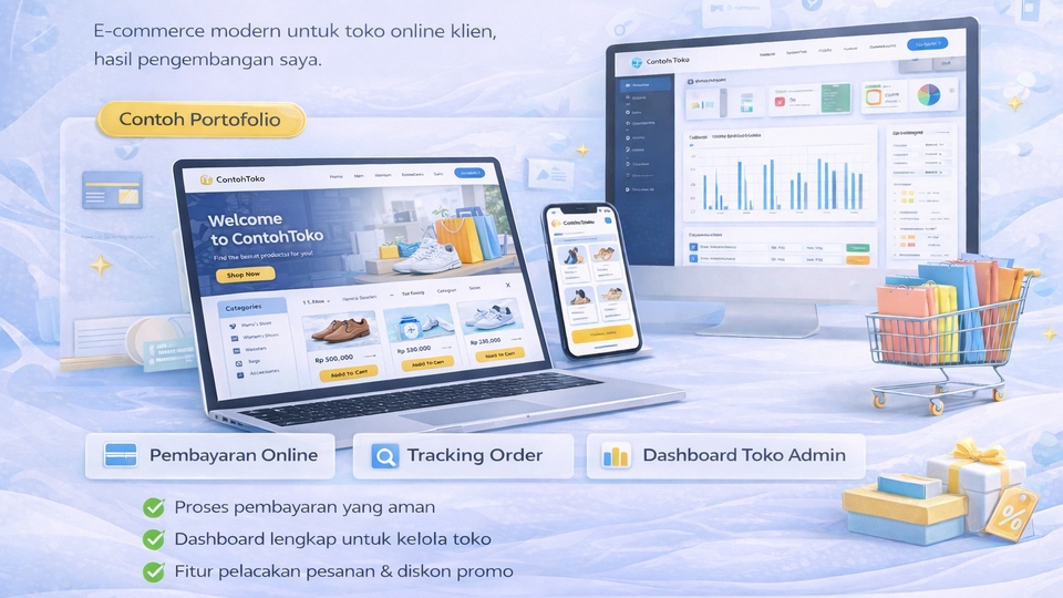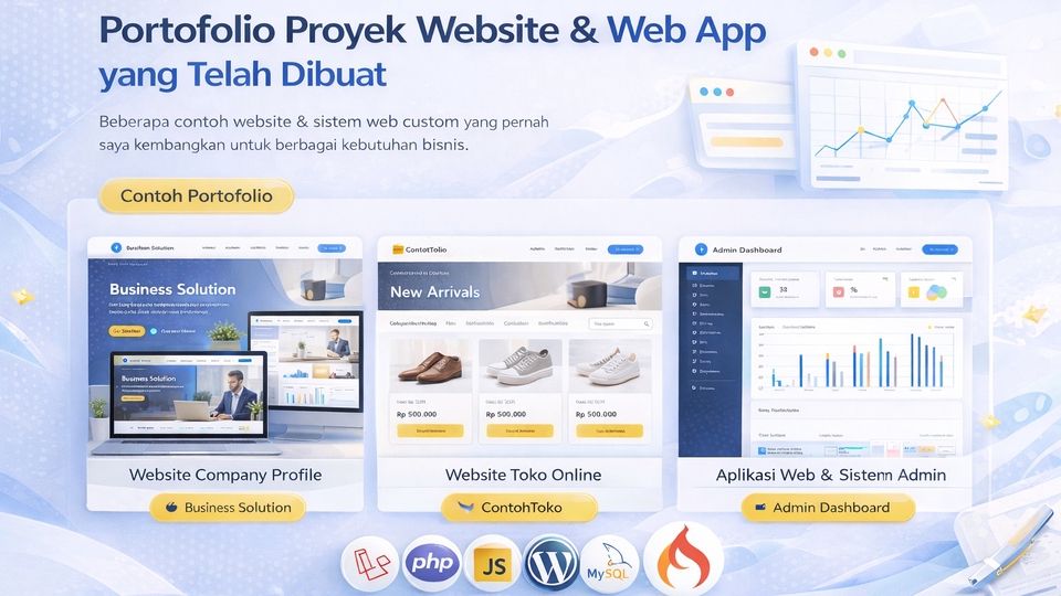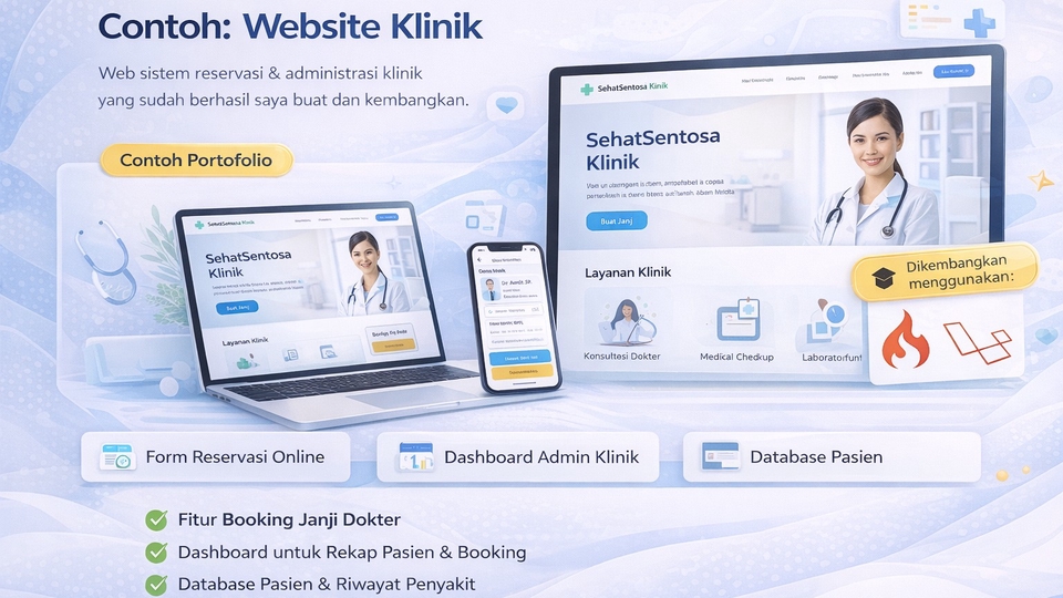 Jasa Pembuatan Website & Sistem Web Custom untuk berbagai kebutuhan, mulai dari website sederhana hingga sistem web yang lebih kompleks. Saya melayani pembuatan: - Website Company Profile - Toko Online - Web App / Sistem Admin (CRUD) - Website & sistem web sesuai kebutuhan bisnis atau proyek Harga dimulai dari Rp1,4 jt (sesuai ketentuan minimal transaksi Fastwork). 👉 Disarankan untuk konsultasi terlebih dahulu sebelum memesan, agar solusi yang dibuat benar-benar sesuai kebutuhan Anda. 📂 Ruang Lingkup Pekerjaan - Website Company Profile (profil bisnis, landing page) - Toko Online (katalog produk, keranjang, checkout manual) - Web App / Sistem CRUD (Admin & User) - Sistem Booking / Reservasi - Sistem Inventori / POS sederhana - Website & sistem web custom sesuai permintaan Setiap proyek dikerjakan menyesuaikan kebutuhan klien, bukan sistem template kaku. 🧠 Pengalaman & Keahlian - Berpengalaman dalam pembuatan website & sistem web - Terbiasa mengerjakan proyek web skala kecil hingga menengah - Mampu mengembangkan sistem web yang rapi, mudah digunakan, dan siap dikembangkan - Fokus pada solusi fungsional & sesuai kebutuhan klien 🔧 Langkah Kerja 1. Konsultasi kebutuhan & tujuan website 2. Penentuan scope, fitur, dan estimasi biaya 3. Proses pengembangan website 4. Testing & revisi 5. Finalisasi dan serah terima 📋 Persyaratan yang Dibutuhkan dari Klien - Agar pengerjaan lebih cepat dan tepat, mohon siapkan: - Jenis website yang dibutuhkan - Fitur utama yang diinginkan - Contoh website referensi (jika ada) - Target waktu pengerjaan ⚠️ Syarat & Ketentuan - Harga menyesuaikan scope dan kompleksitas proyek - Penambahan fitur di luar scope awal akan dibicarakan terpisah - Tidak menerima proyek yang melanggar hukum atau kebijakan Fastwork 💬 Catatan Penting 👉 Silakan chat terlebih dahulu sebelum memesan. Saya akan membantu menentukan solusi terbaik sesuai kebutuhan dan anggaran Anda.