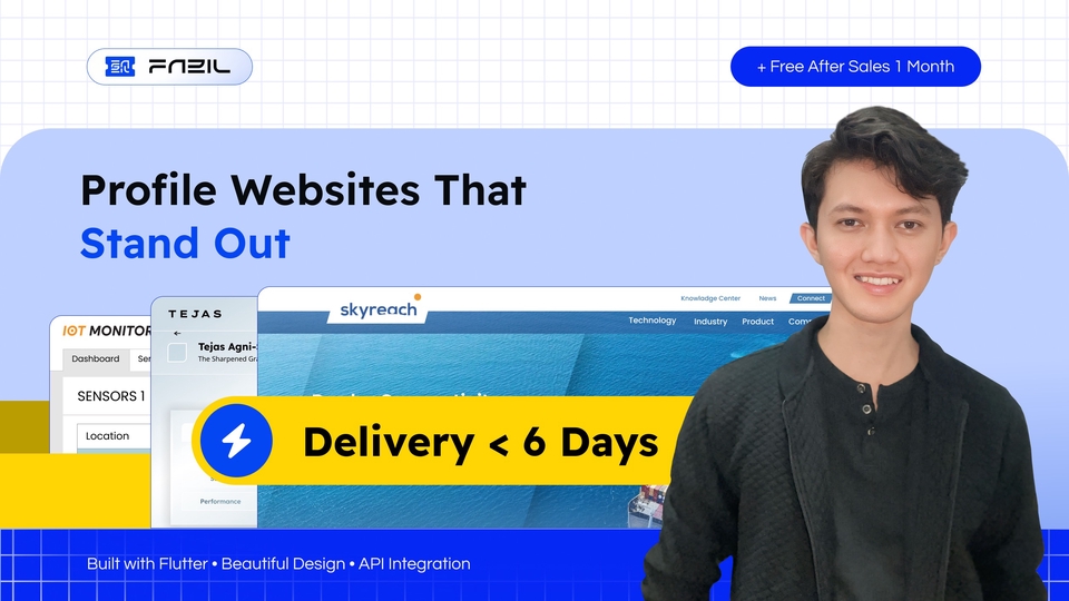Saya membuat website personal dan company profile dengan desain modern, cepat diakses, dan mudah dikelola. Website dibangun secara responsif (desktop & mobile) dengan tampilan profesional yang meningkatkan kredibilitas dan branding bisnis Anda.