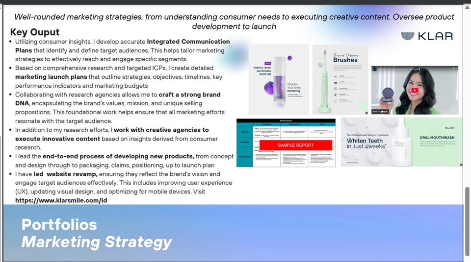 Hai! Saya seorang marketing leader dengan lebih dari 12 tahun pengalaman di industri FMCG, kesehatan, dan startup. Berpengalaman dalam mengembangkan strategi pemasaran yang efektif, serta meluncurkan produk baru yang inovatif. Saya suka bekerja dengan tim dari berbagai bidang dan selalu berusaha untuk mendapatkan hasil yang nyata. Dengan pengalaman saya di FMCG, saya paham bagaimana cara menarik perhatian konsumen dan memanfaatkan tren pasar. Saat ini, saya sedang mencari kesempatan untuk membantu brand Anda berkembang lebih baik lagi. Let's talk! Langkah Pekerjaan 1. Konsultasi dan diskusi via chat platform 2. Berdasarkan diskusi awal, menyepakati rencana kerja termasuk waktu dan biaya yang terlibat. 3. Pelaksanaan project dimulai sesuai dengan rencana yang disepakati.