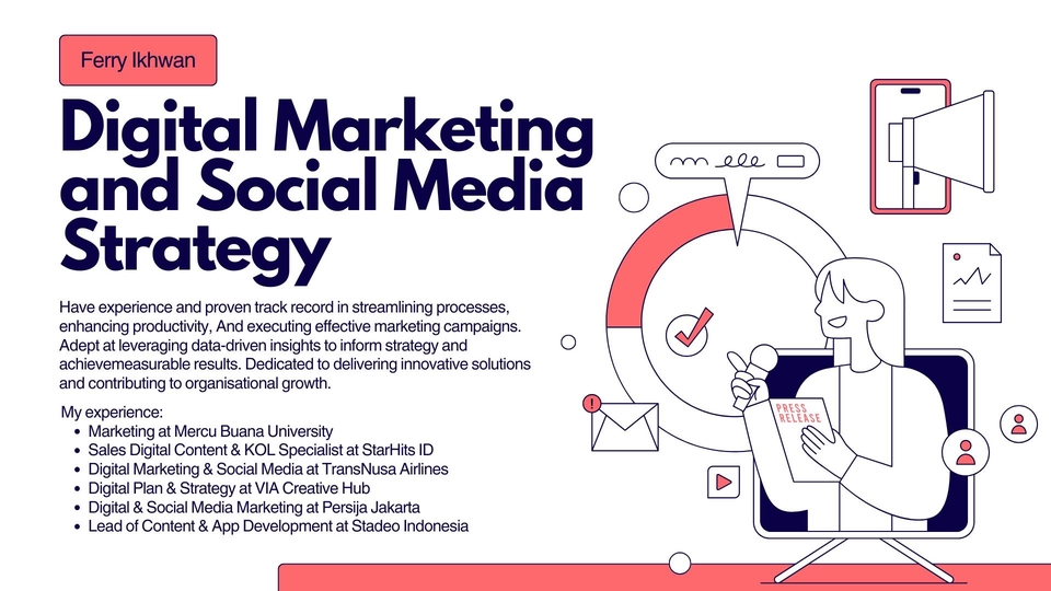 Pengalaman & Keahlian : - 10+ tahun dalam social media management & digital marketing - Mahir menggunakan Canva, Photoshop, dan tools scheduling - Berpengalaman dalam strategi konten, copywriting, serta iklan berbayar (Facebook & Instagram Ads) - Memahami algoritma & trend di Instagram, Facebook, TikTok, dan LinkedIn Langkah Kerja : - Membahas tujuan bisnis & target audiens - Membuat strategi dan kalender konten bulanan - Mendesain konten visual & menulis caption sesuai brand identity - Menjadwalkan & mempublikasikan konten di platform sosial media - Memberikan update progres & insight performa secara rutin - Mengirimkan laporan akhir beserta rekomendasi strategi lanjutan - Persyaratan Yang Dibutuhkan Dari Klien - Informasi bisnis & target audiens - Logo, brand guideline, dan aset visual (foto/video) bila ada - Akses akun media sosial atau role sebagai admin - Konten khusus (jika ada) yang wajib dipublikasikan Syarat & Ketentuan : - Tidak menerima pengelolaan akun yang terkait dengan perjudian, SARA, atau aktivitas ilegal - Revisi strategi & konten sesuai kesepakatan awal - Semua data dan informasi bisnis klien dijaga kerahasiaannya