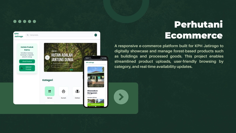 Layanan pembuatan website dengan framework modern, contoh pada thumbnail merupakan hasil real daripada pembuatan website ecommerce dari perusahaan Pemerintahan Perum Perhutani