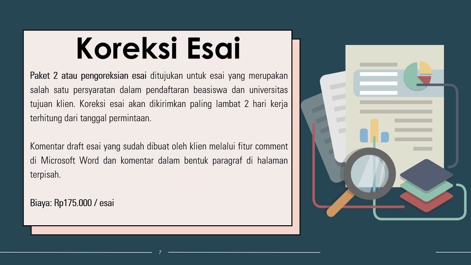 Rp175,0 rb- Komentar draft esai: comment di Ms Word dan komentar dalam bentuk paragraf di halaman terpisah. - Dikirimkan paling lambat 2 hari kerja terhitung dari tanggal permintaan. - Maksimal 2x feedback