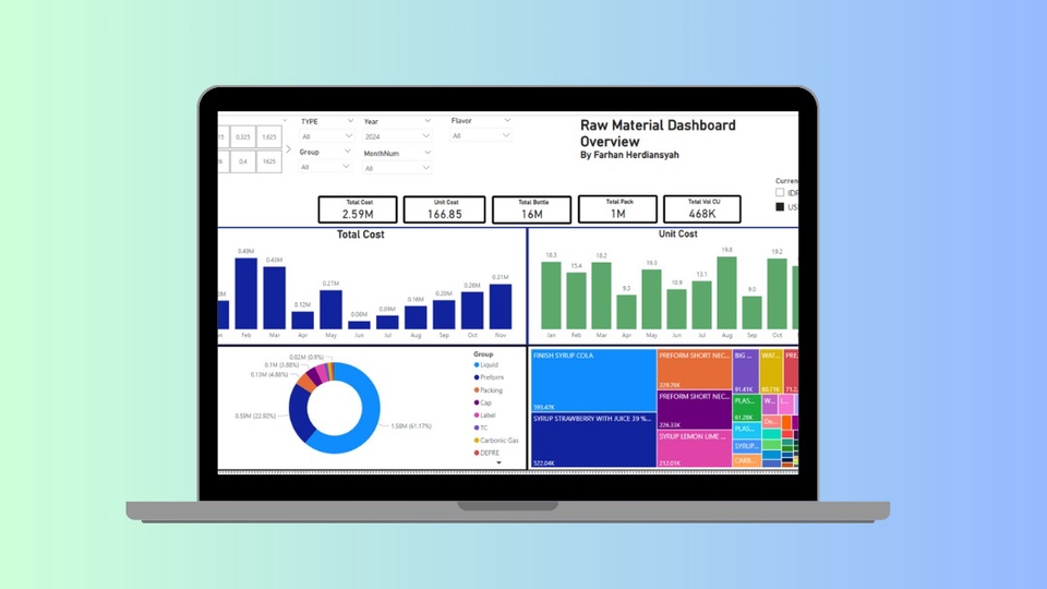 Rp750,0 rbPaket ini cocok untuk professional reporting / corporate: - multiple page dashboard - gabungan berbagai source data (.xlsx, CSV, Google Sheets, dll.) - Interactive dashboard