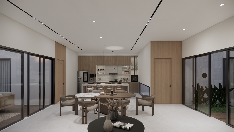 Merancang berdasarkan kebutuhan dan fungsi yang diinginkan dengan menggabungkan estetika, fungsi, dan karakter Anda ke dalam setiap sudut ruangan. Saya percaya bahwa setiap orang memiliki gaya hidup dan selera unik. Karena itu, saya merancang ruang tidak hanya untuk ditinggali, tetapi untuk mencerminkan siapa Anda sebenarnya. Mulai dari pemilihan material, palet warna, tata letak, hingga desain furnitur custom—semua kami hadirkan dengan detail dan kualitas terbaik. Langkah Pekerjaan 1. Layouting 2. Proses Pembuatan Facade 3. Proses Interior 4. Proses Rendering 5. Finalisasi Design