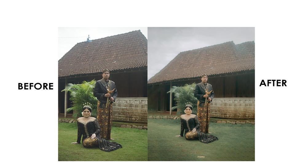 Jasa Edit foto wedding contoh foto real dari kita dan kita menggunakan lightroom + photoshop untuk hasil yang maksimal fitur lightroom yang kita gunakan antara lain : White Balance Correction, Color Correction, Contrast Correction, Temperature Adjustments, Saturation Adjustments, Noise Reduction, Sharpness, Cropping, Tonal Correction. dan kita juga memakai photoshop untuk detailing yang maksimal Anda bisa negosiasi dengan kita masalah style warna dan konsep editing sesuai tema vendor anda Langkah Pekerjaan 1. hubungi kita 2. bisa negosiasi harga