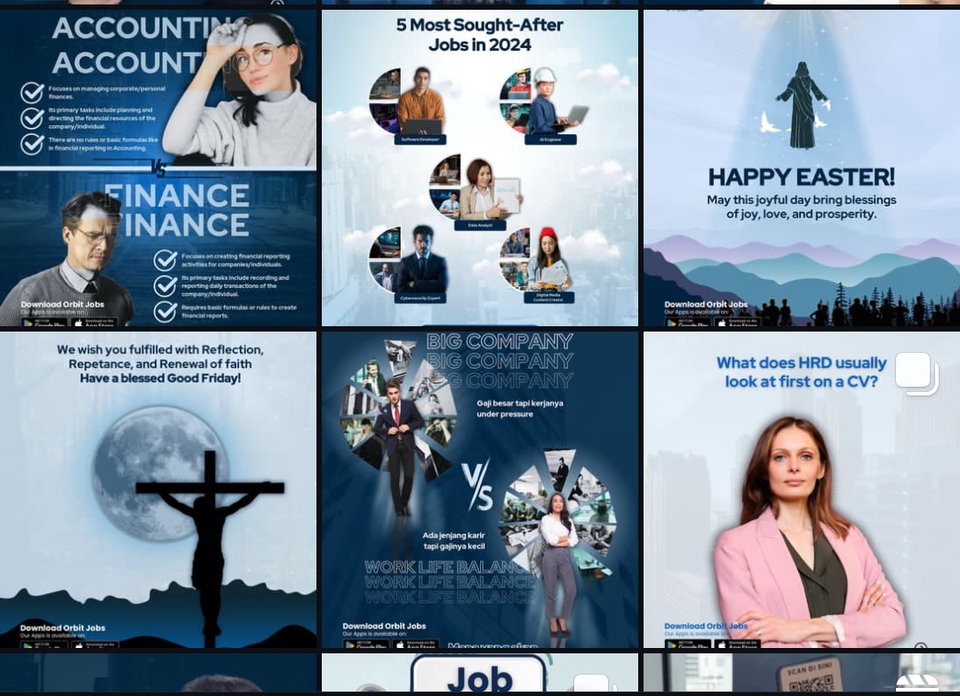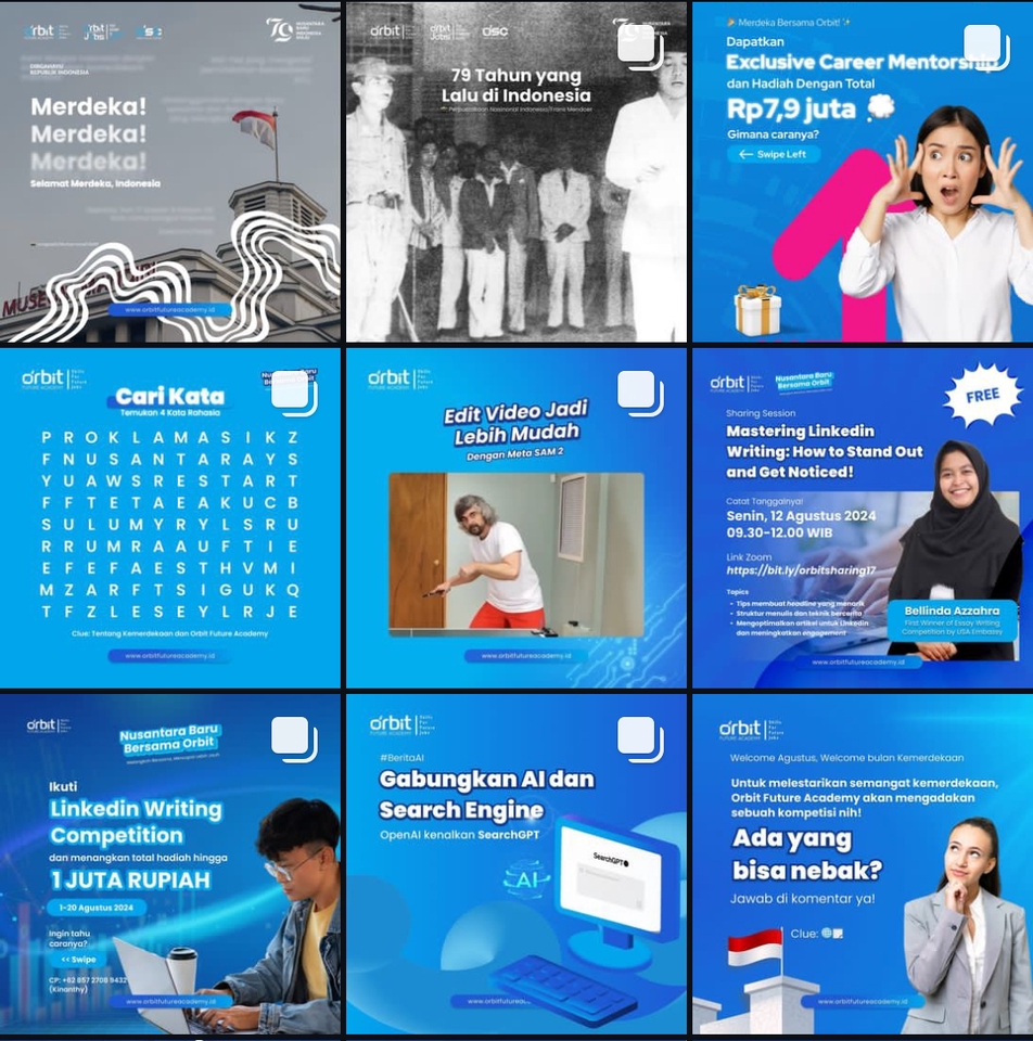 Dalam digital marketing, membuat konten yang menarik audiens sangatlah penting. Performa dari konten yang kita buat, dapat menjadi acuan untuk menilai apakah konten yang kita buat menarik perhatian/disukai oleh audiensi atau tidak. Oleh karenanya, percayakan pembuatan konten kepada yang berpengalaman amatlah dianjurkan. Langkah Pekerjaan 1. Diskusi kebutuhan & goals klien 2. Research & create content idea 3. Ajukan ke klien 4. Revisi (opsional) 5. Final review 6. Kirim ke klien