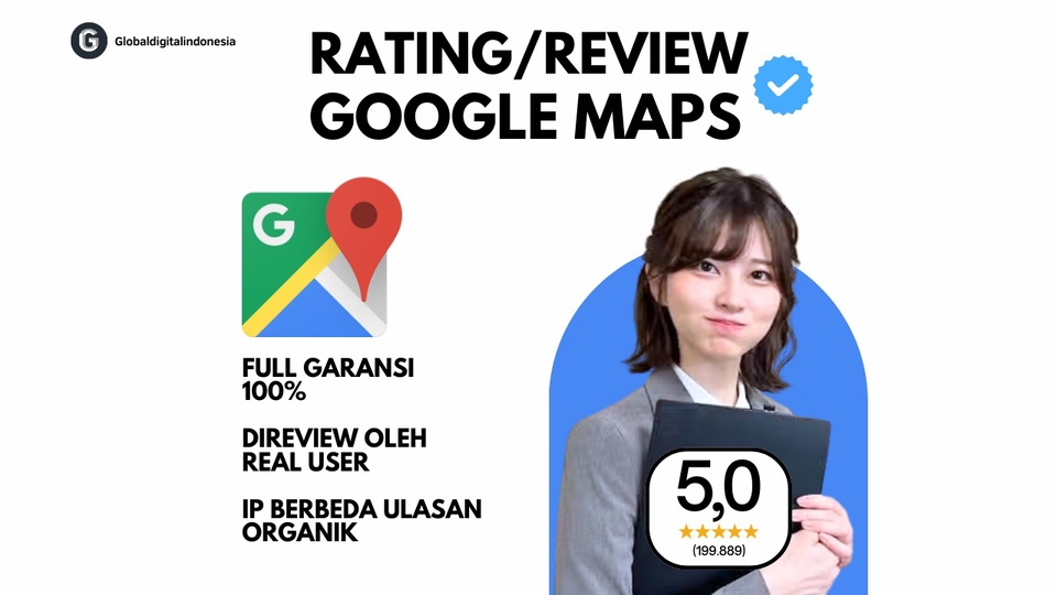 SELAMAT DATANG DI GLOBAL DIGITAL INDONESIA Kami adalah Agency berpengalaman yang telah membantu ribuan UMKM Indonesia dengan membantu menaikan Rating Usaha Google Maps Bisnis anda, sehingga para pelaku UMKM Indonesia menjadi Relevan dimata Client, Pembeli dan Mitra Bisnis anda untuk menjadi lebih terpercaya. KAMI MENJAGA AMANAH DAN TANGGUNG JAWAB PENGERJAAN JADI SABAR! KAMI TIDAK MENERIMA ULASAN JELEK & BINTANG 1 DALAM BENTUK APAPUN! KEUNTUNGAN ORDER DISINI : - 100% Terbaik dengan Kualitas Real Profesional - Garansi Penyelesaian Sesuai Kuota Pesanan - Review/Ulasan Bersifat Lokal Indonesia User Asli - Kualitas Review/Ulasan Real Akun Pengguna Asli - Dirating / Review oleh user asli bukan bot , jadi sangat aman - Selalu memberikan Bintang 5 pada Review/Ulasan CATATAN PENTING : 1. Bagi yang Order harap chat terlebih dahulu admin 2. Harga Tertera Sesuai dengan Paket Diatas / ulasan / review 3. Bergaransi 7x24 jam 4. Harap beri Ulasan Pesanan Bintang 5 dan Memuaskan untuk Garansi Anda! 5. Anda memesan berarti anda mengerti 6. Laporan berupa nama pengulas / screenshoot pengulas jika perlu 7. Selesaikan pesanan saat proses pengerjaan selesai