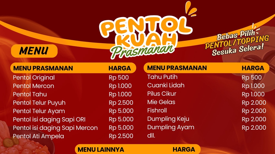 Jasa Pembuatan Menu Pricelist Makanan / F&B