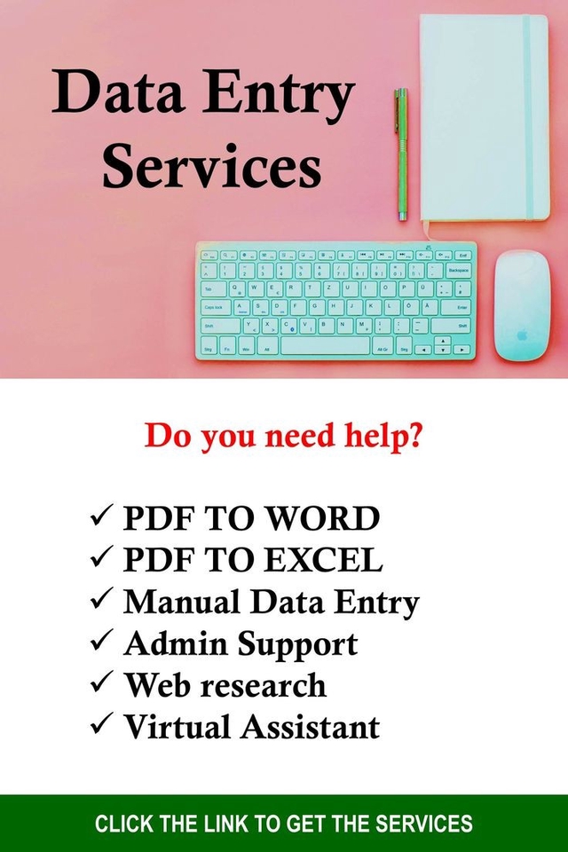 Saya menguasai word, excel dan ppt. Saya dapat melakukan entri data dengan cepat tepat dan akurat. Owner menjelaskan secara detail terkait pekerjaan dan diskusikan masalah harga dan waktu penyelesaian. Langkah Pekerjaan 1. Hubungi saya dan diskusikan mengenai pekerjaan anda. (Konsep yg di inginkan, banyaknya data, target pengerjaan) 2. Deadline pembayaran
