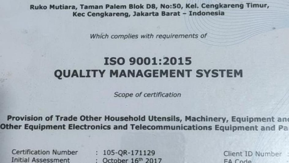 Rp33,0 jtSertifikat ISO 9001 Non KAN