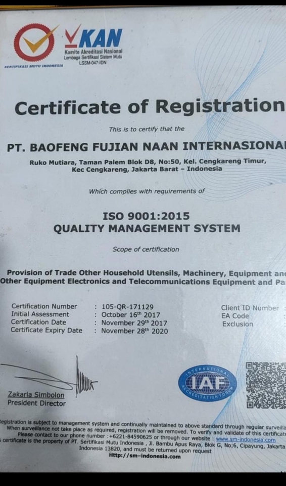 Rp35,0 jtSertifikat ISO 9001 KAN