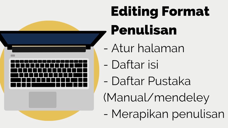 Saya merupakan lulusan S-1 Biologi. Menyusun dan menulis laporan dan berbagai karya tulis ilmiah yang lain sudah sering dilakukan. Oleh karena itu saya mampu melakukan editing atau merapikan penulisan KTI sesuai dengan pedoman penulisan yang baik dan benar. Langkah Pekerjaan 1. Mendiskusikan keinginan anda 2. Menjelaskan format penulisan atau perbaikan penulisan yang diinginkan 3. Mengirimkan contoh pedoman penulisan yang diinginkan 4. Menunggu hingga proses pengerjaan selesai