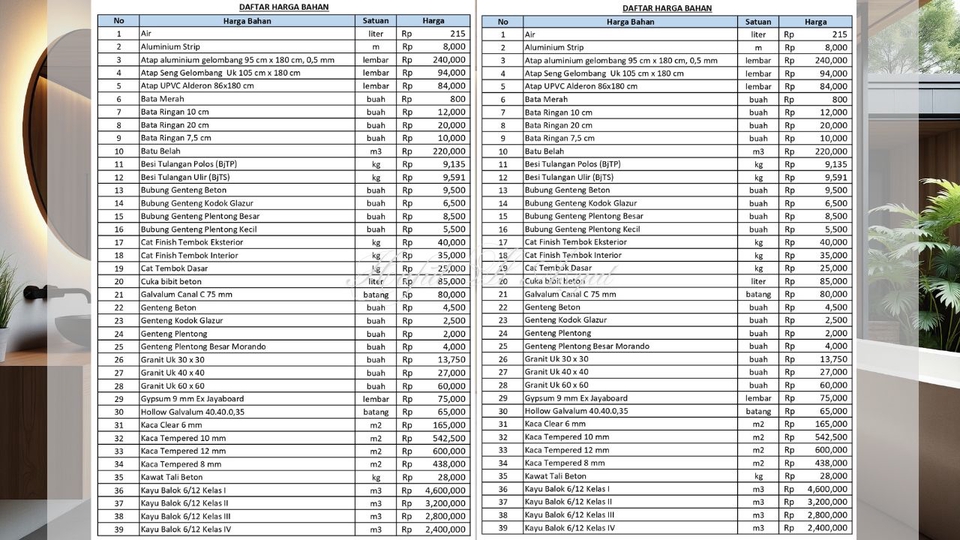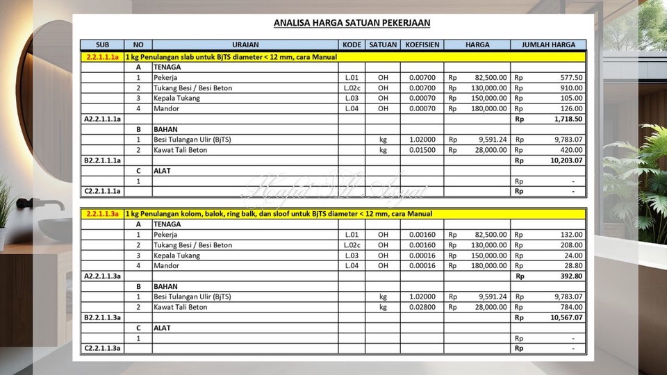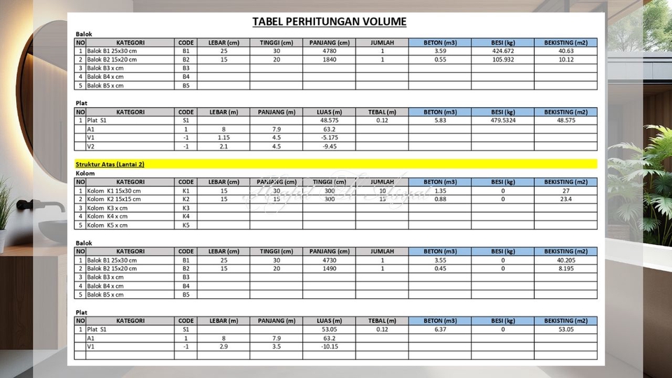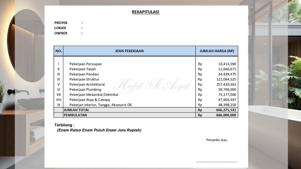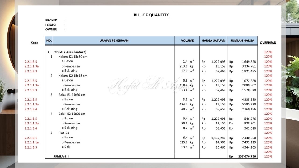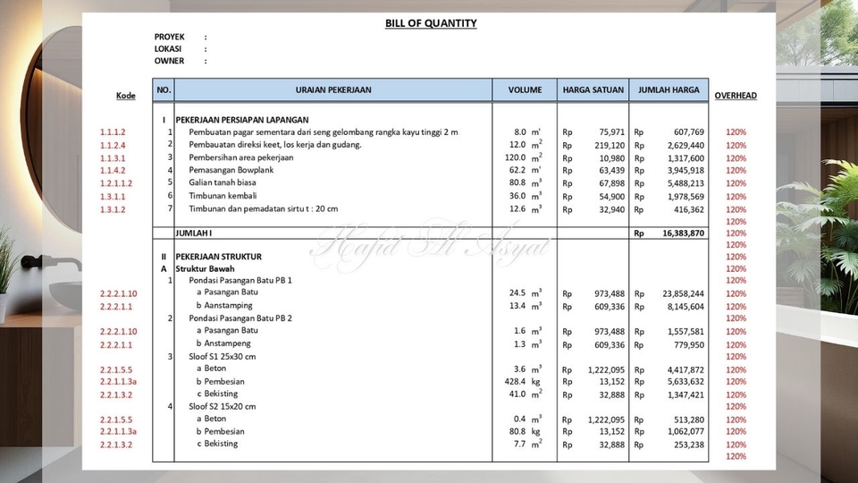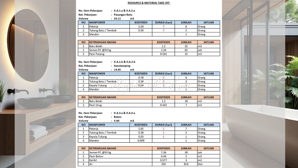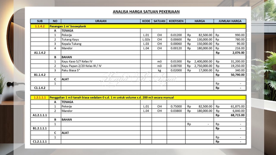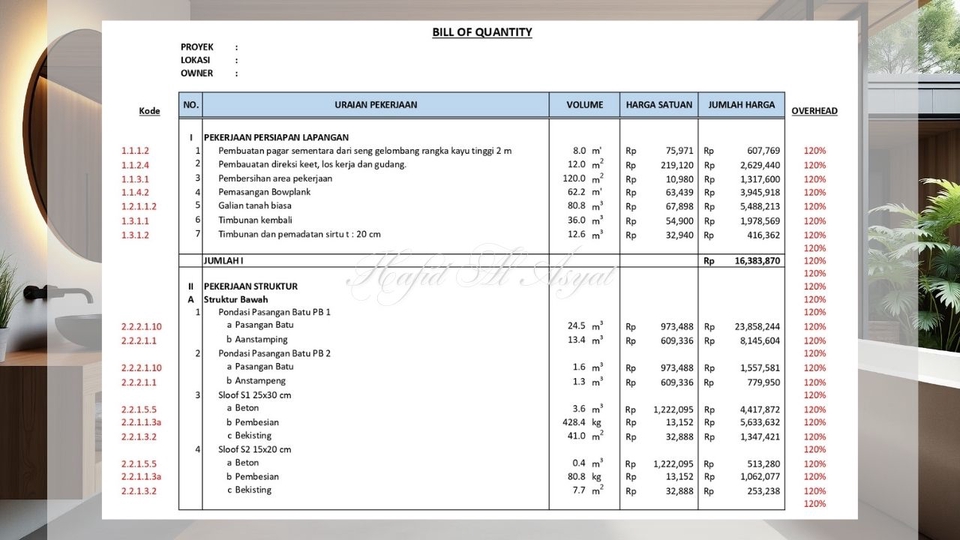 Rp350,0 rbPaket 5.000/m2 : - BOQ - Back Up Volume - Rekapitulasi