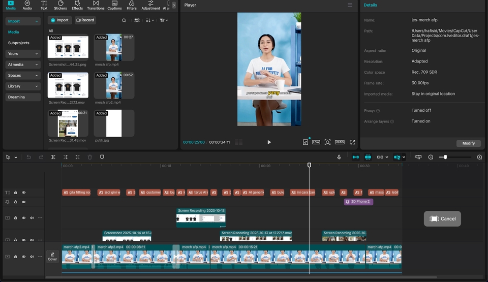 Kami menawarkan jasa produksi 30 Video Konten AI Vertikal profesional untuk menjamin konsistensi konten media sosial Anda selama satu bulan penuh. Kami tidak hanya fokus pada editing cepat, tetapi juga pada strategi komunikasi visual untuk memastikan setiap video explainer atau review teknologi disajikan dengan narasi yang jelas, dan menarik perhatian audiens secara instan. Cocok Untuk: -Akun media sosial yang butuh konsistensi konten setiap hari. -Brand yang ingin terlihat up-to-date di bidang teknologi atau edukasi. Portfolio Video Ai: s.id/VideoAiHafisid Workflow: 1. Briefing Intensif: Kami mendengarkan tujuan Anda, mengumpulkan materi mentah (teks, logo, foto), membahas mengenai konsep video, menentukan karakter dan sound dalam video. 2. Pembayaran: Anda melakukan pembayaran sesuai dengan paket yang dipilih 3. Pembuatan Script: Proses pembuatan script dan juga pengumpulan asset video jika dibutuhkan (Client dapat revisi script 1x) 4. Review & Revisi: Kami akan memberikan preview pengerjaan, mendengarkan masukan anda, dan merevisi video jika diperlukan (Revisi maksimal 1x selain revisi script) 5. Finalisasi & Serah Terima: Pengiriman semua file dalam format mp4.